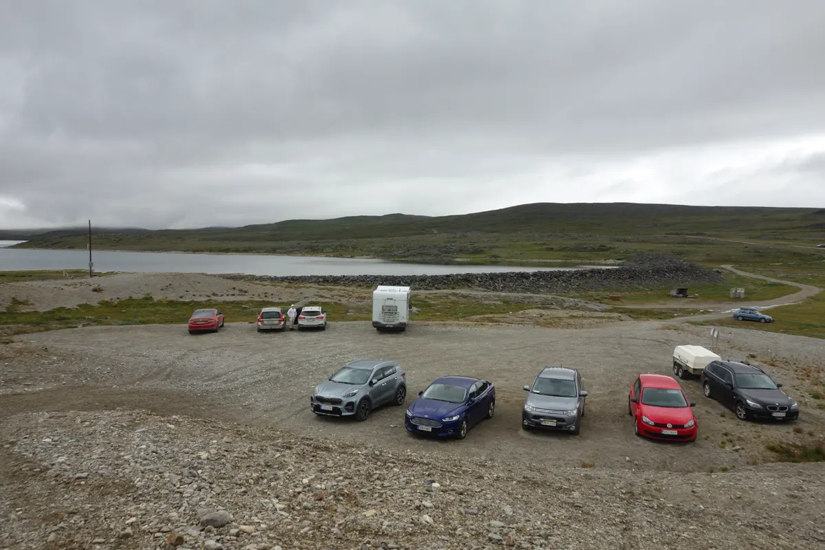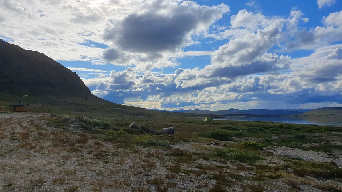 Halti trail park is a parking lot nicely located next to Lake Guolasjávri. There are nice tent facilities next to the lake, a simple shelter with tables and benches and information boards describing the area. It is a popular starting point for many different hikes in the area.